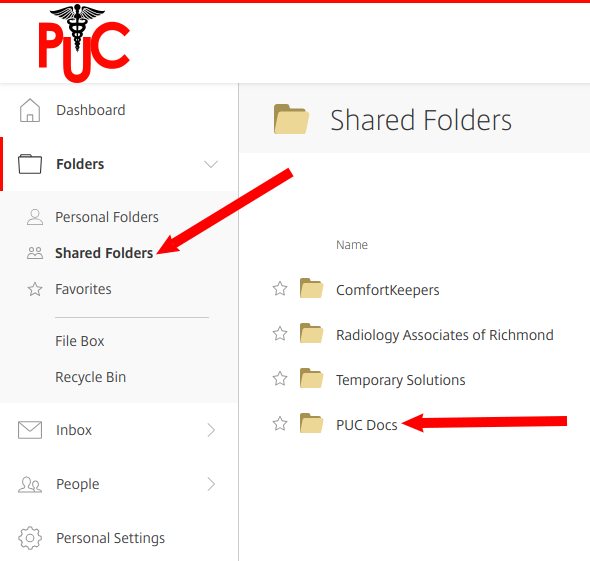 and go to ''Shared Folders'', then ''PUC Docs''.